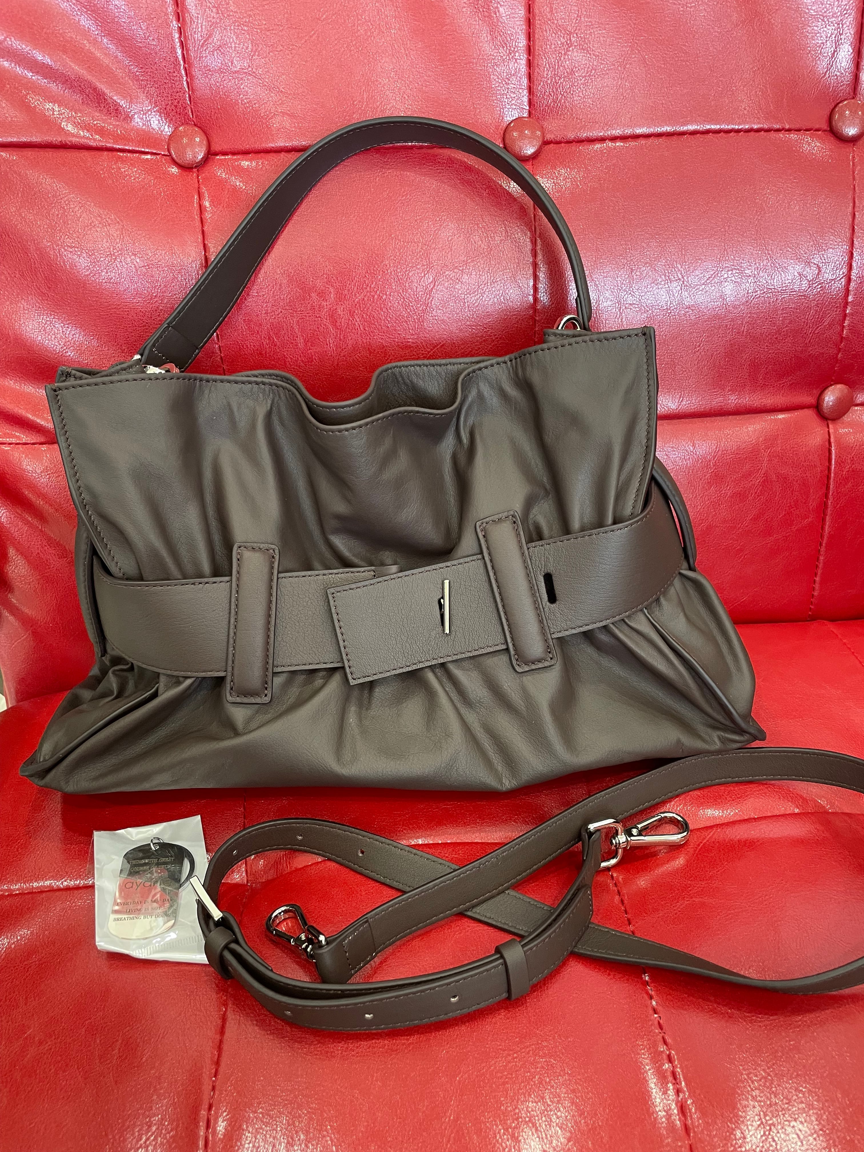 ayane アヤンラムレザーハンドバック(ショルダー用ベルト付き)